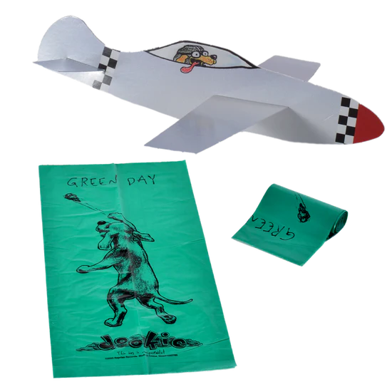 This deluxe vinyl box features the six LPs pressed on 6 different varieties of brown vinyl, plus a 36-page 12” x 12” book. The box also includes many fun memorabilia items inspired by the “Dookie” artwork: Doggie Poop Bags, Air-Freshener, Poster, Color-in litho, Button Set, Magnet Sheet, Postcard, Bumper Sticker and Paper Plane.