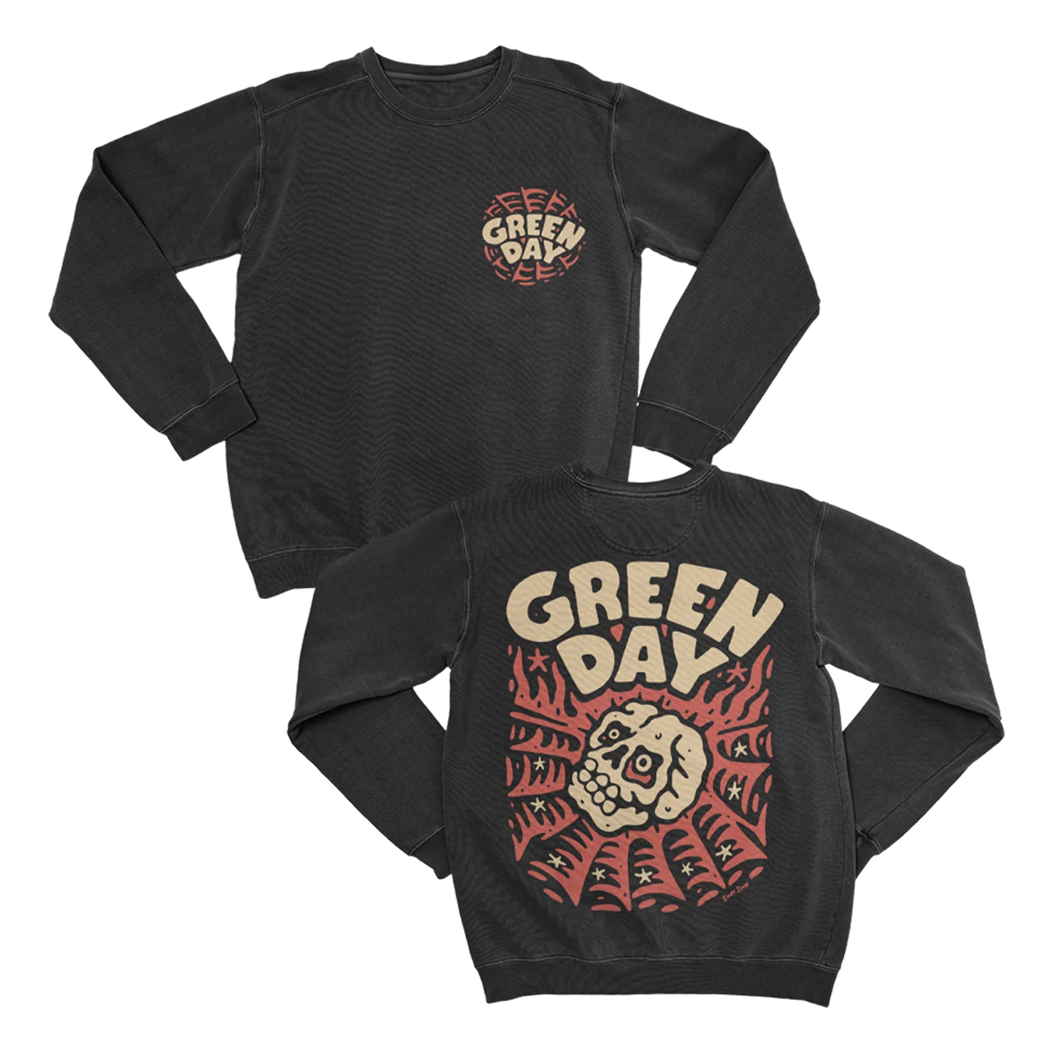 Printed on a cotton/polyester fleece black crewneck sweatshirt.